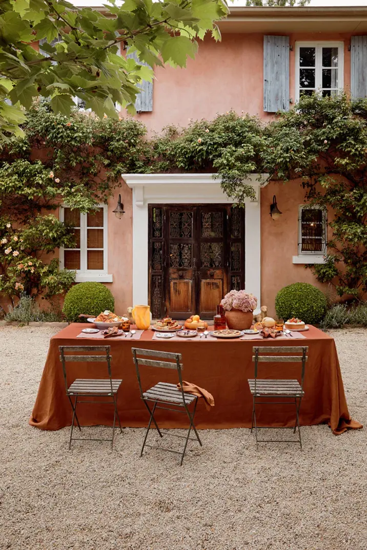 Whether it's in the form of bedding, tableware, sleepwear, or dresses, linen is key to this summery look. Red is the central tone to embrace, but this trend also leans on limoncello, olive, whites, soft blues, sage, and burnt orange.
