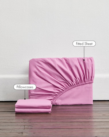 Bubblegum Organic Cotton Percale Fitted Sheet Set Fitted Sheet Set Organic Cotton Percale