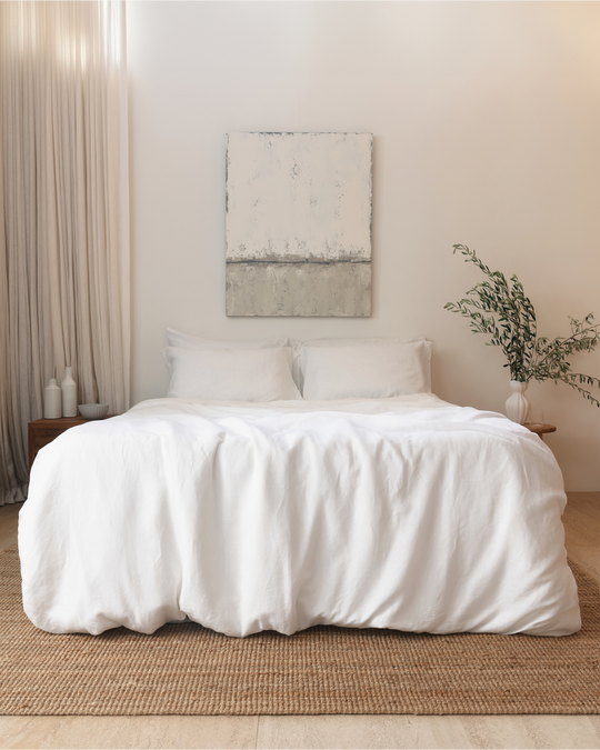 White 100% French Flax Linen Bedding Set Bedding Set 100% French Flax Linen