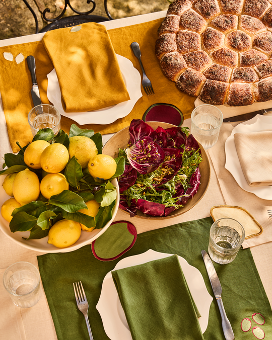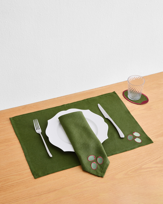 Les Fruits Olive Placemats (Set of Four) Les Fruits Olive Placemats (Set of Four) 100% French Flax Linen