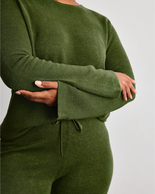 Veranda Linen Knit Sweater in Olive Veranda Linen Knit Sweater 100% French Flax Linen