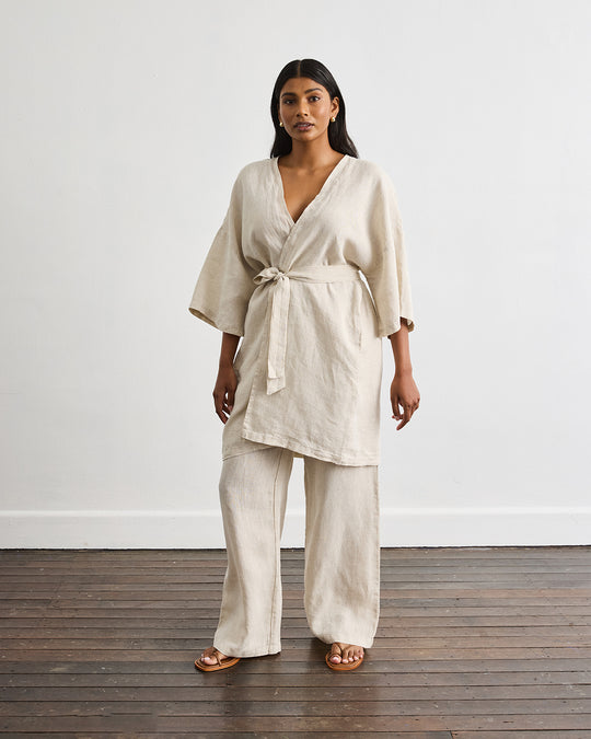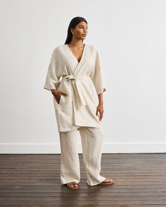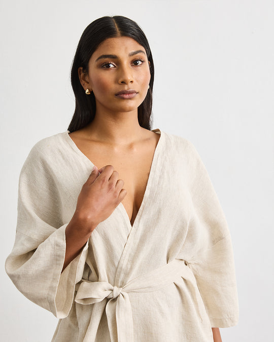 Cabana Short Robe in Oatmeal Cabana Short Robe 100% French Flax Linen