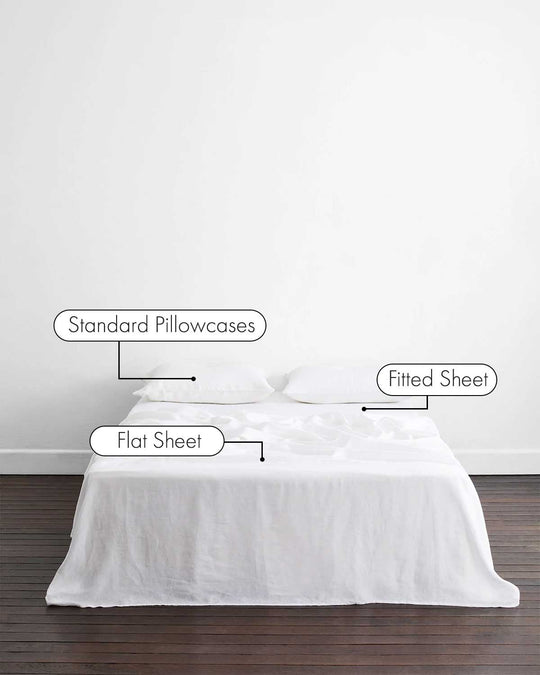 White 100% French Flax Linen Sheet Set Sheet Set 100% French Flax Linen