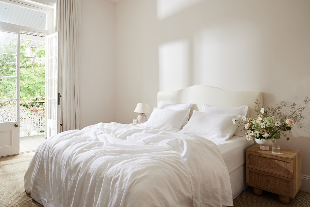 White 100% French Flax Linen Bedding Set White Bedding Set 100% French Flax Linen