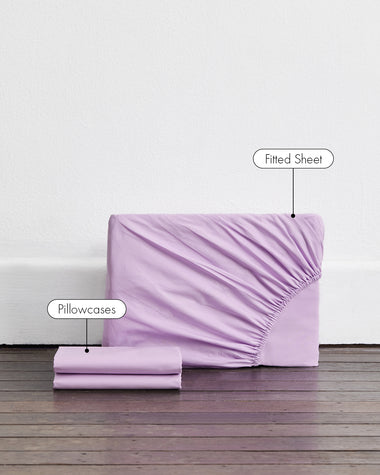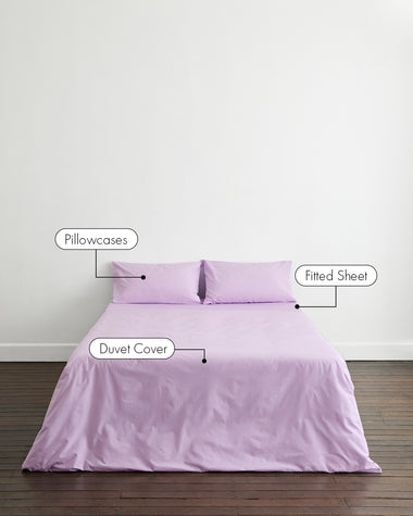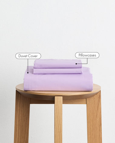 Awaken your senses with our organic cotton percale bedding in Violet, available as duvet covers, sheets and pillowcases.