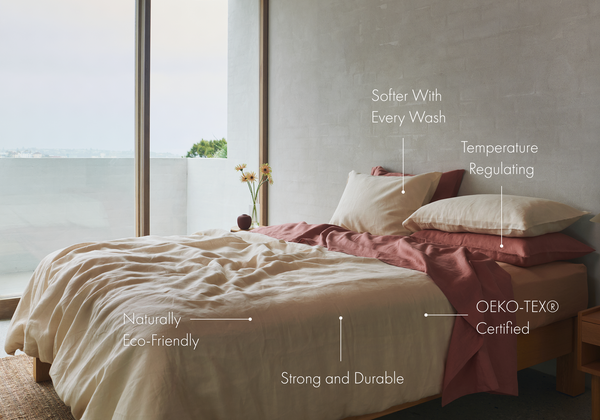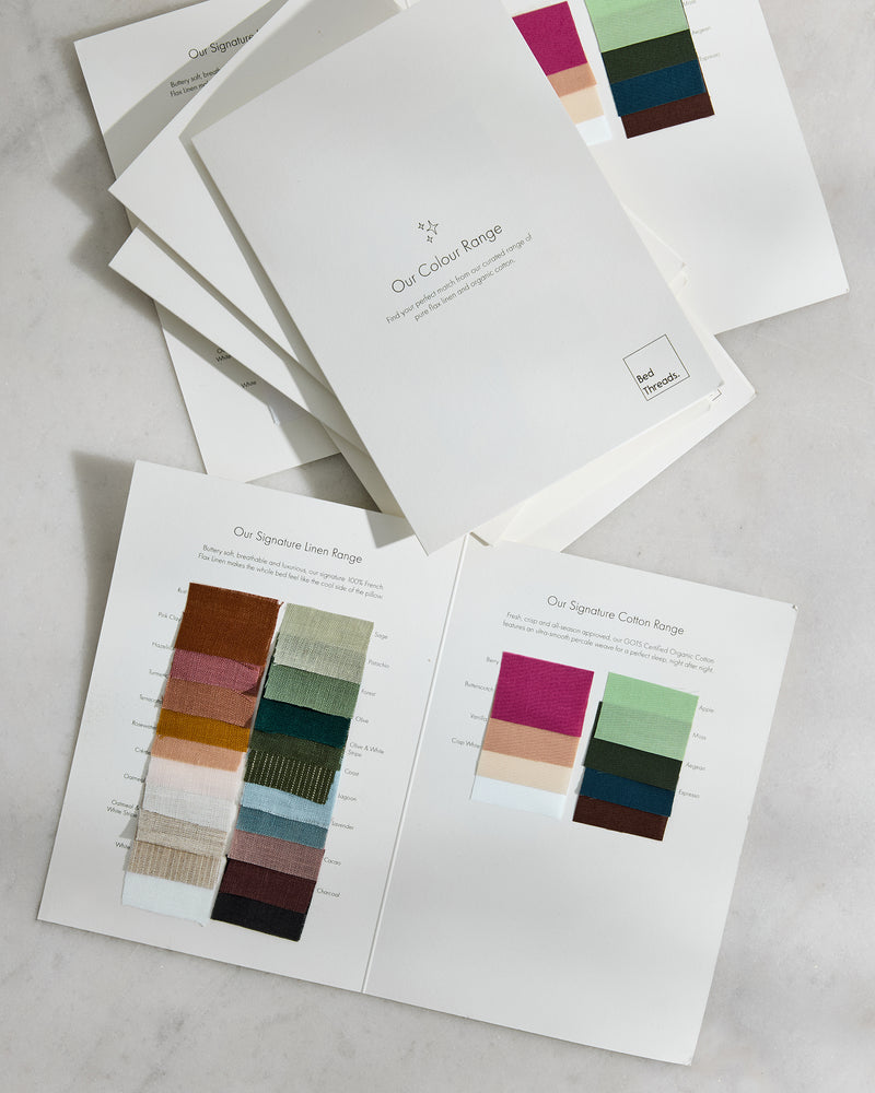 Undecided? We’ll send you a swatch card, that features all of our colors, for free to make your decision simpler. Find your perfect match from our curated range of pure flax linen and organic cotton while visualizing our 20+ luxuriously rich colorways in your own space. Our swatch cards make it easy to compare our range of hues to your existing interiors and create the space of your dreams.