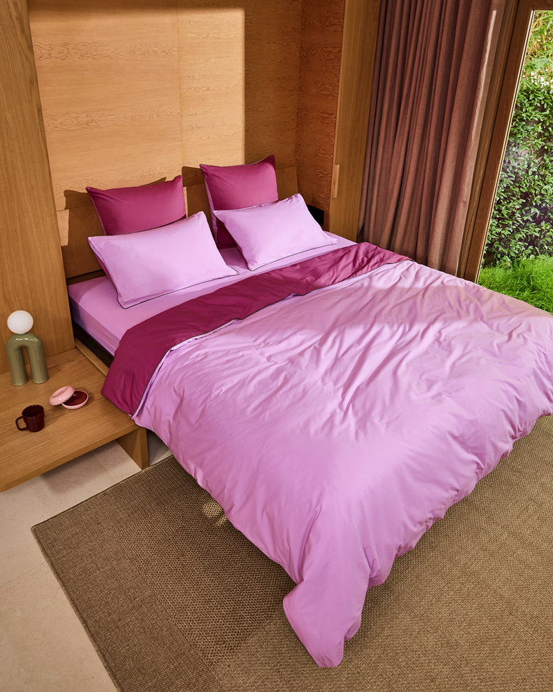 Berry, Bubblegum & Moss Piped Duvet Cover Set 100% Organic Cotton Percale
