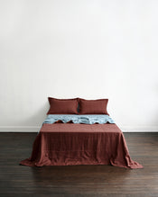 Cacao & Lagoon Two-Tone Quilt 100% French Flax Linen