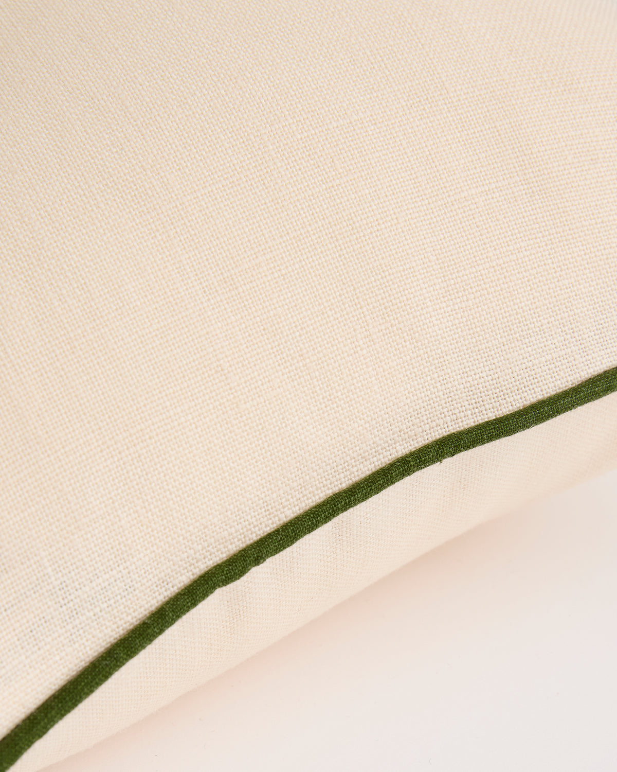 Crème & Olive Piped Cushion Cover 100% French Flax Linen