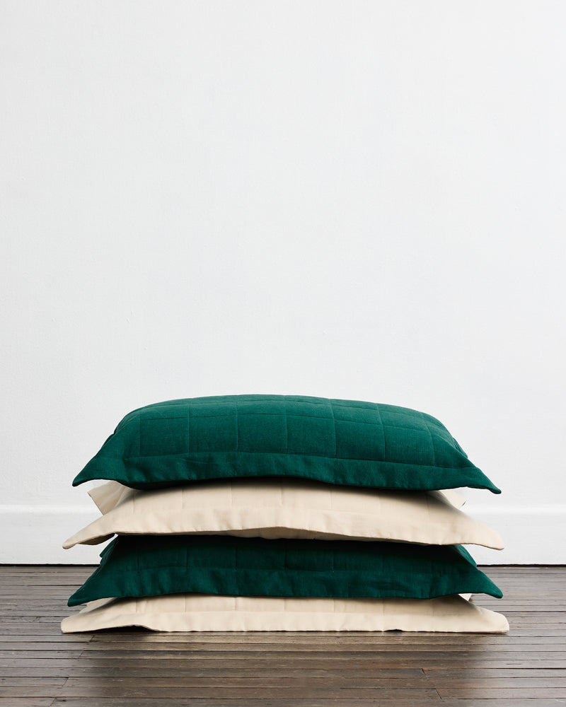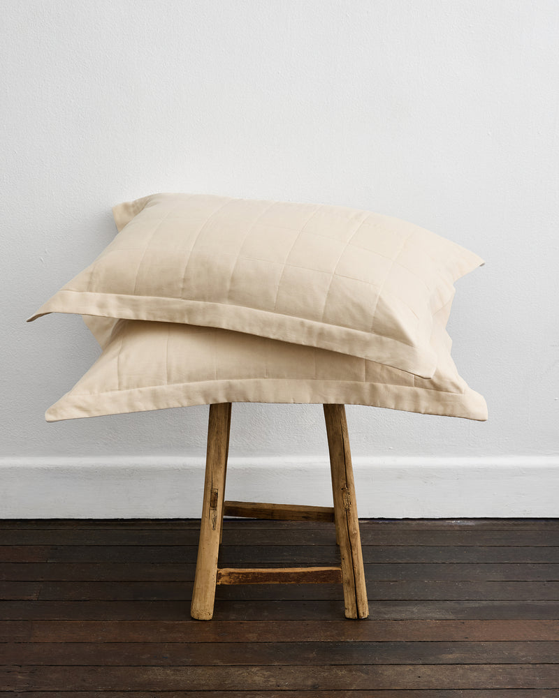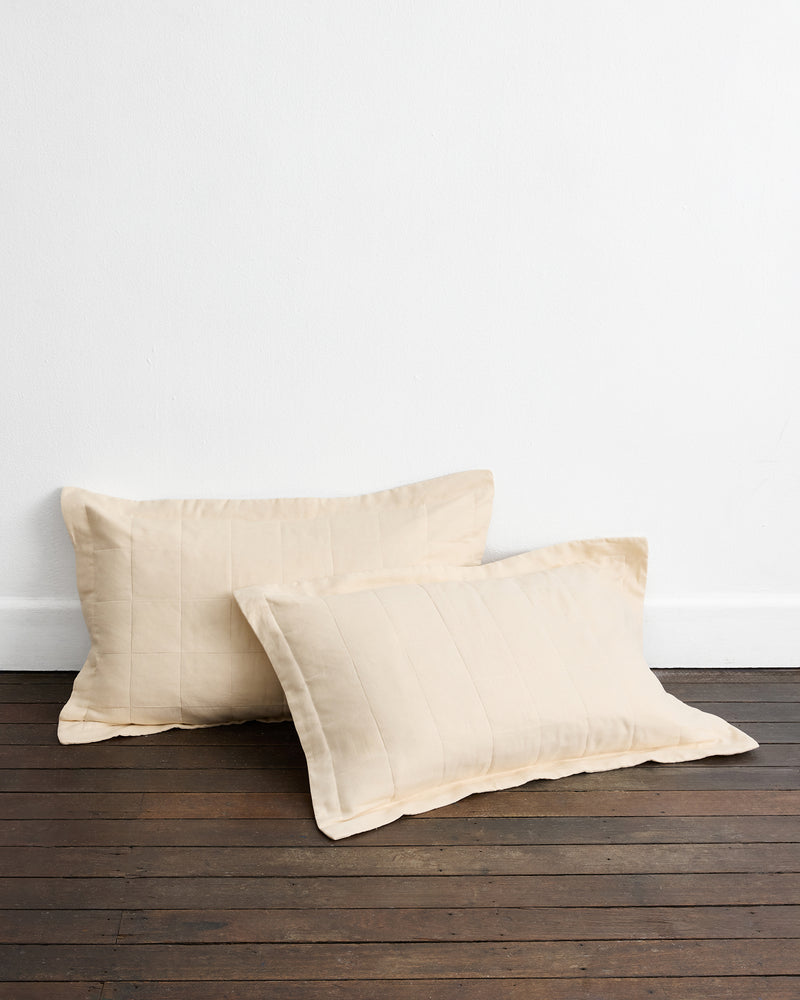 Crème Quilted Pillowcases (Set of Two) 100% French Flax Linen