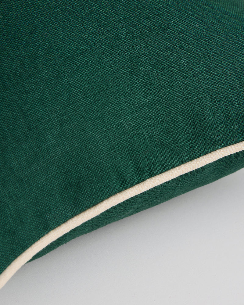 Forest & Crème Piped Cushion Cover 100% French Flax Linen