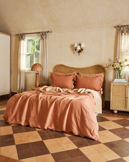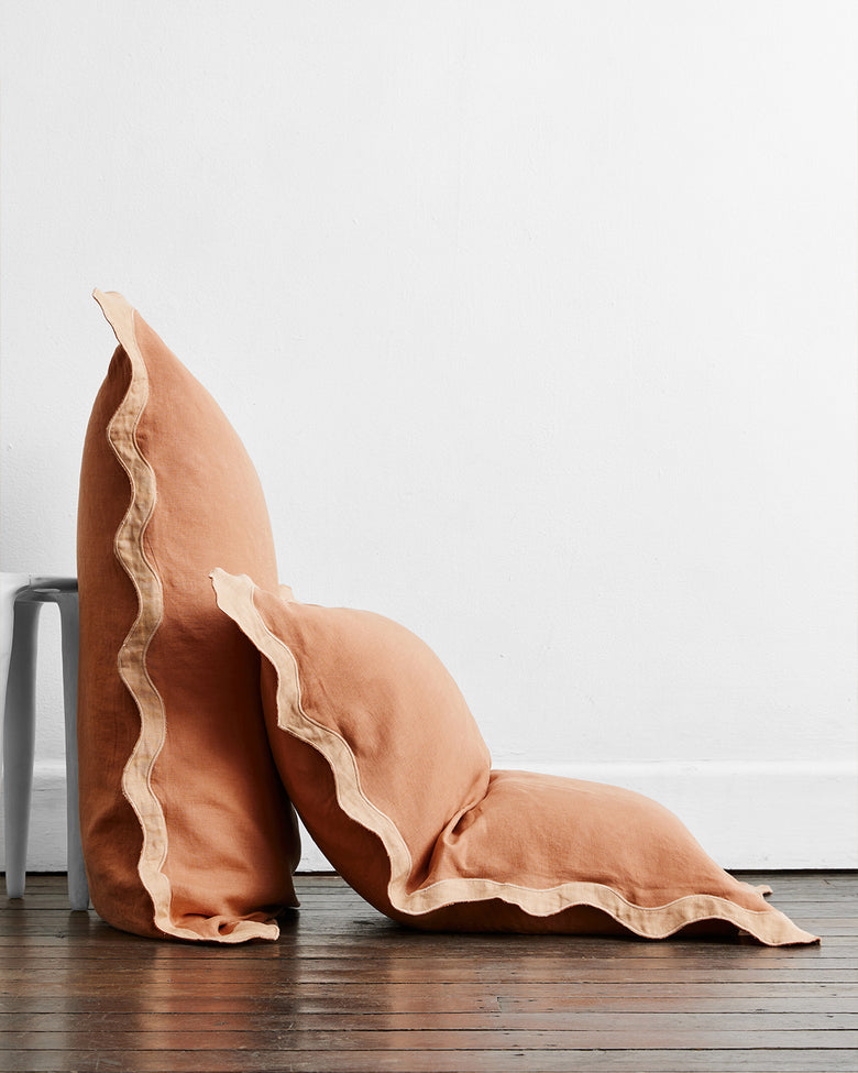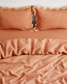 Hazelnut & Terracotta Scalloped Pillowcases (Set of Two) 100% French Flax Linen