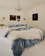 Lagoon & Crème Muslin Throw 100% French Flax Linen
