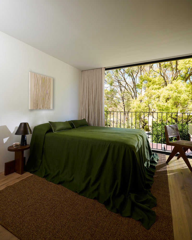 Olive Heavy Linen Bed Cover 100% French Flax Linen