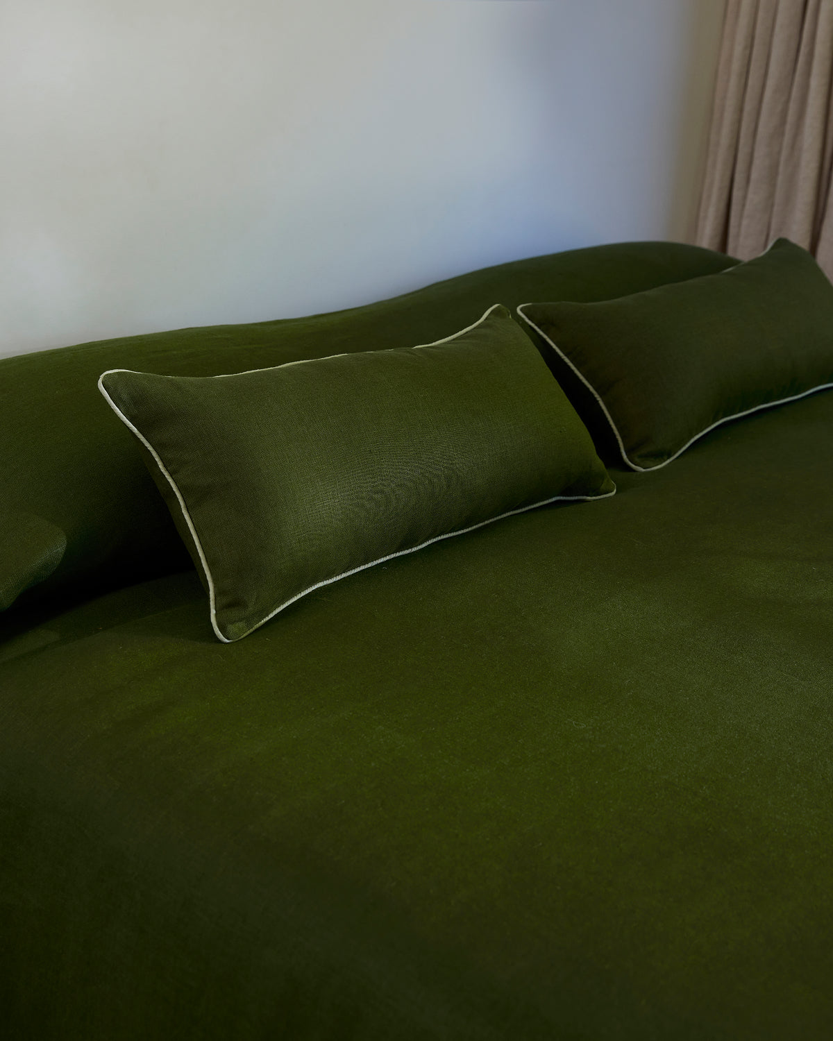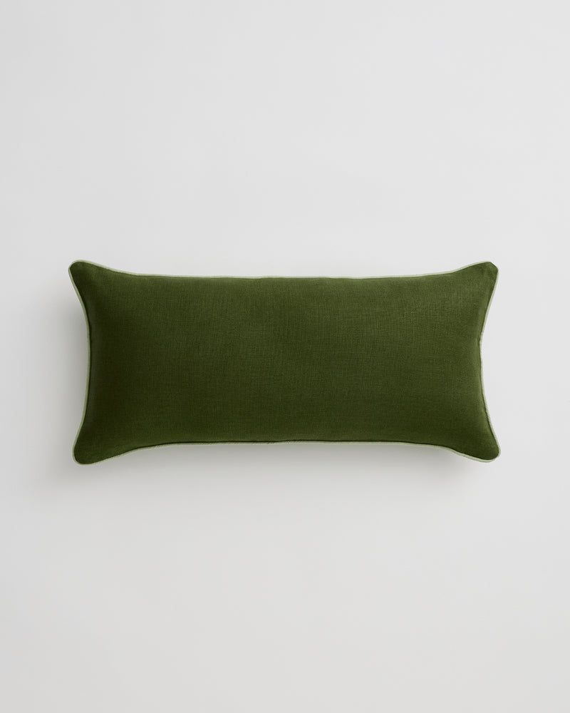 Olive & Sage Piped Lumbar Cushion Cover 100% French Flax Linen