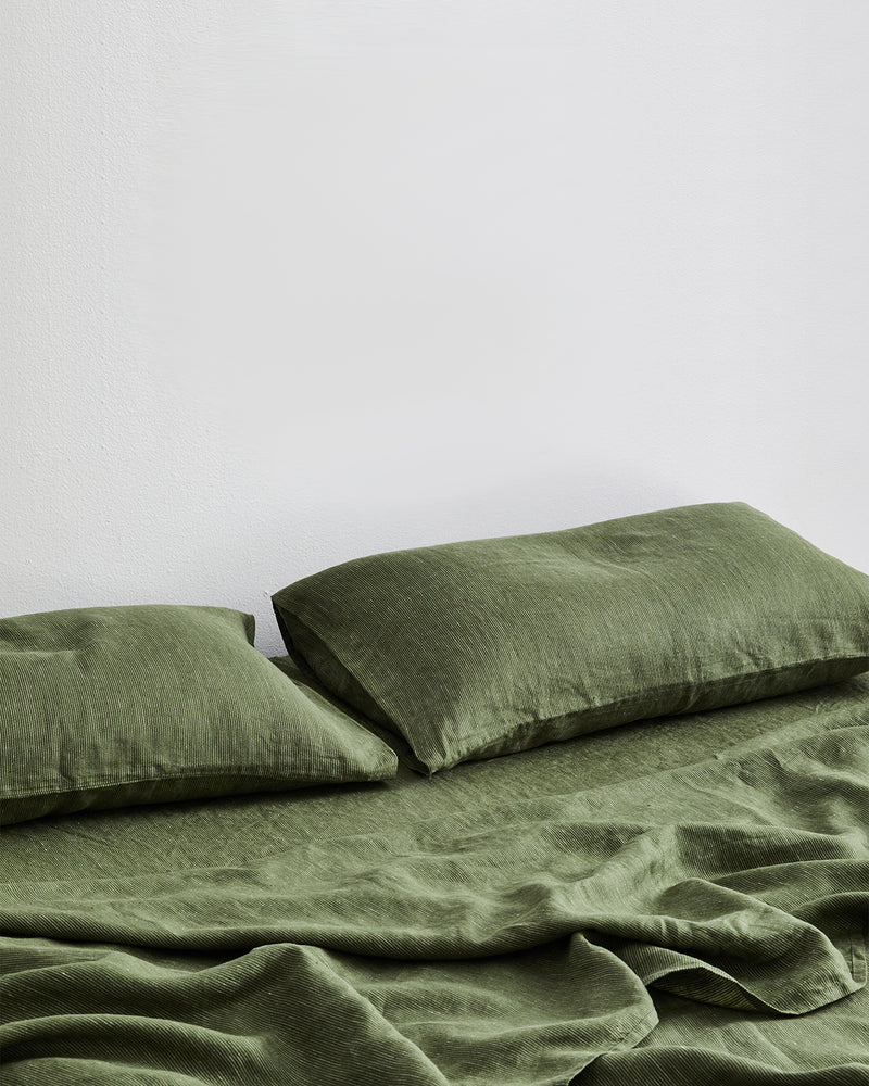 Olive Stripe Fitted Sheet Set 100% French Flax Linen