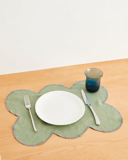 Pistachio & Mineral Cloud Placemats (Set of Four) 100% French Flax Linen