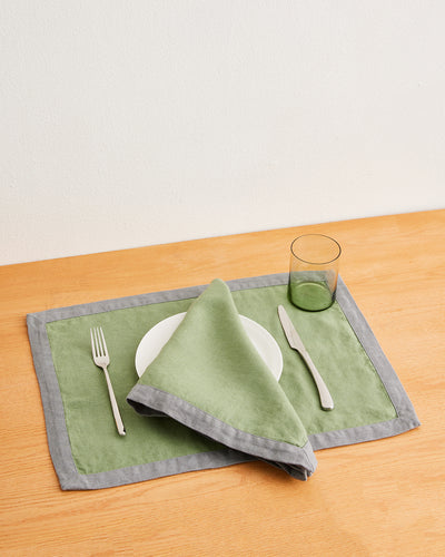 Pistachio & Mineral Trim Napkins (Set of Four) 100% French Flax Linen