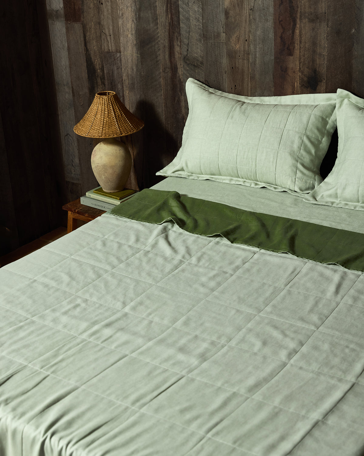 Sage Quilted Pillowcases (Set of Two) 100% French Flax Linen